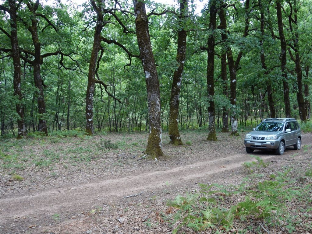 Foloi forest is a beautiful oak forest in the southern foothills of mount Erimanthos. There is a main dirt road that crosses the forest. In the middle of the dirt’s road length, a paved road crosses ( Spot 1 ). This dirt road is not included in Google maps.