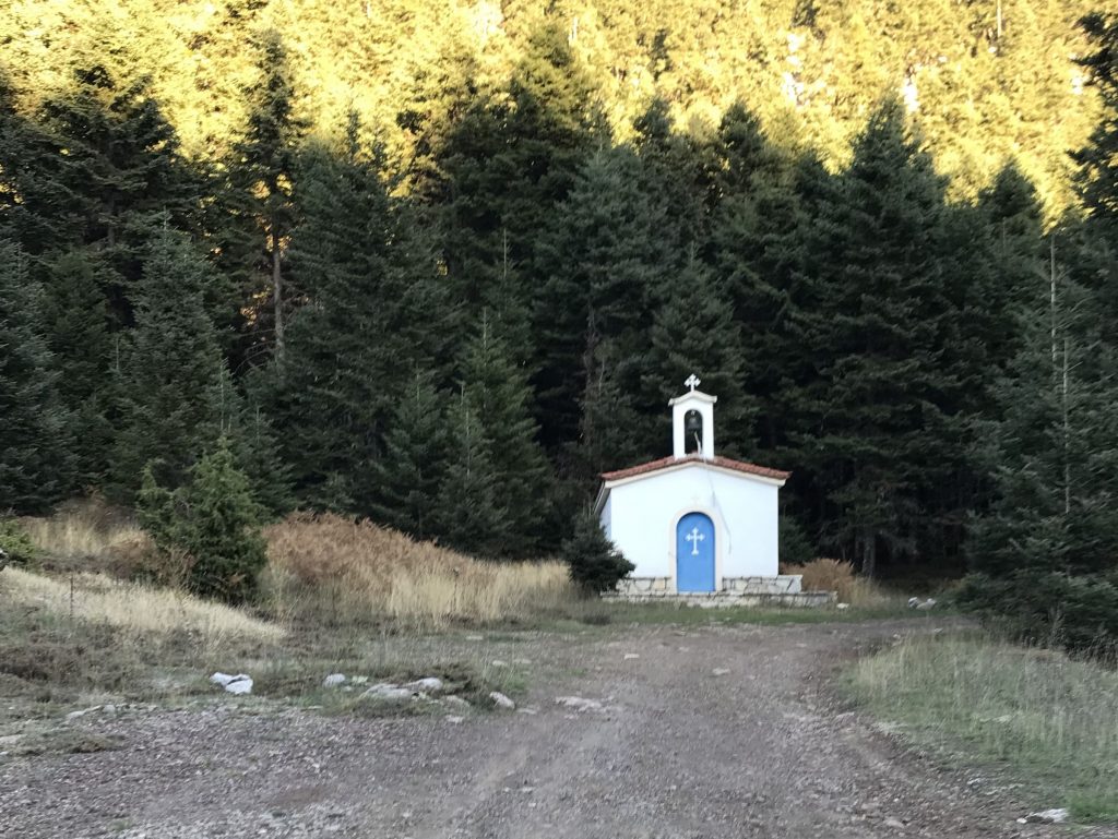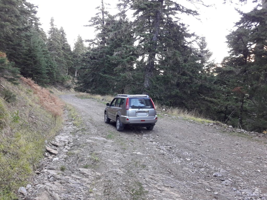 This is a very short and easy trail near the Ski center of Parnassos. Driving in this trail you will pass next to Agios Nikolaos church. You can pass it as a detour going to Agoriani ( Eptalofos ) from Arachova or from the Ski center. Note that during winter and early spring, the trail may be unpassable due to snow.