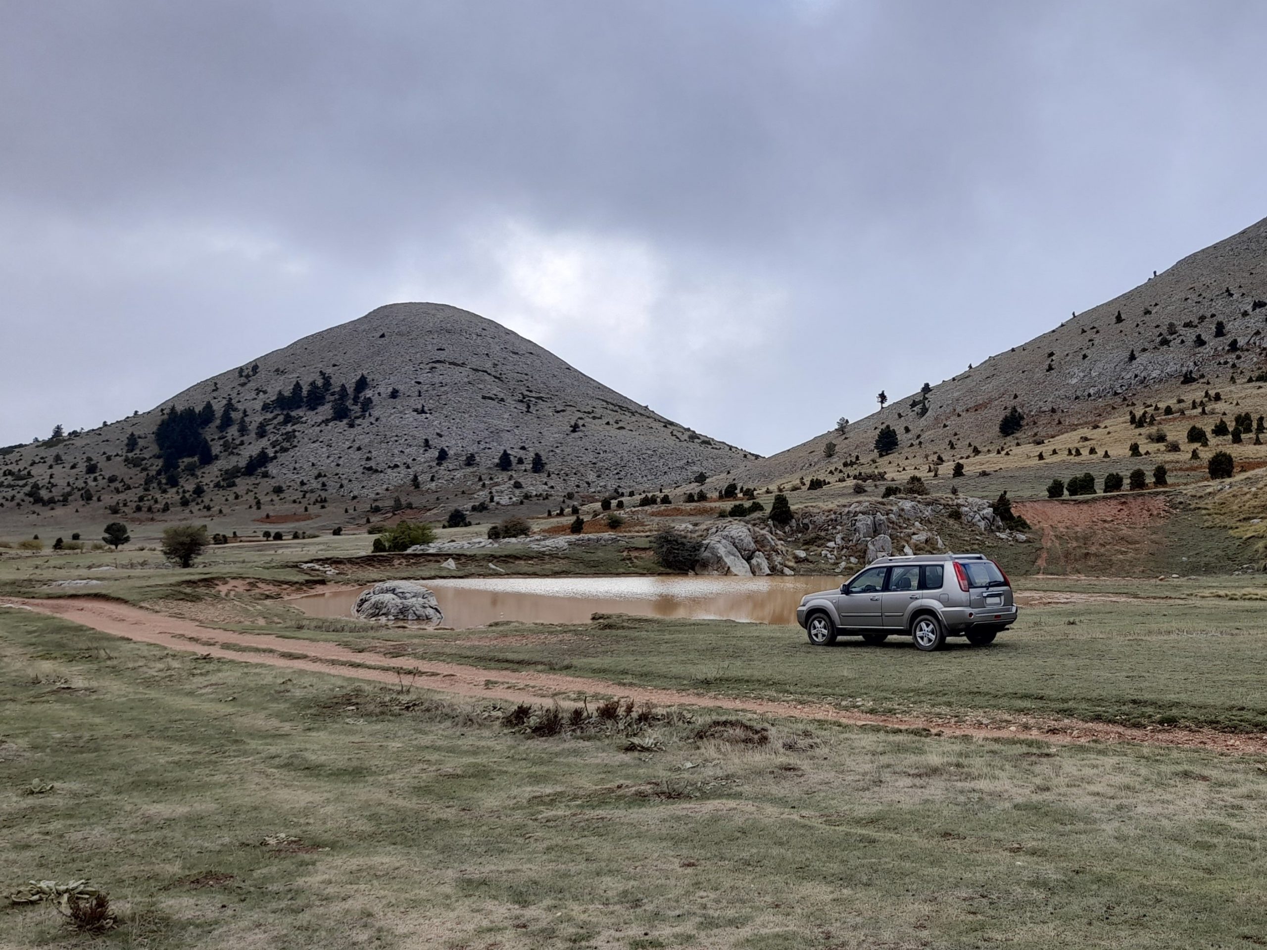 A beautiful plataeu at 1.650 m of altitude, with a small alpine lake and a chappel. There you can hike around, even to the top of the mountain at 1.965 m. You can drive futher south of the chappel, for a about 1 km. There are several trails that lead there. We went from the one that beggins from south west of the plateau, the one in the map. We left going east from a trail that leads to the village of Sitaina. This trail does not exist in Google maps. The plateau during winter months may not be reachable by car, due to snow.
