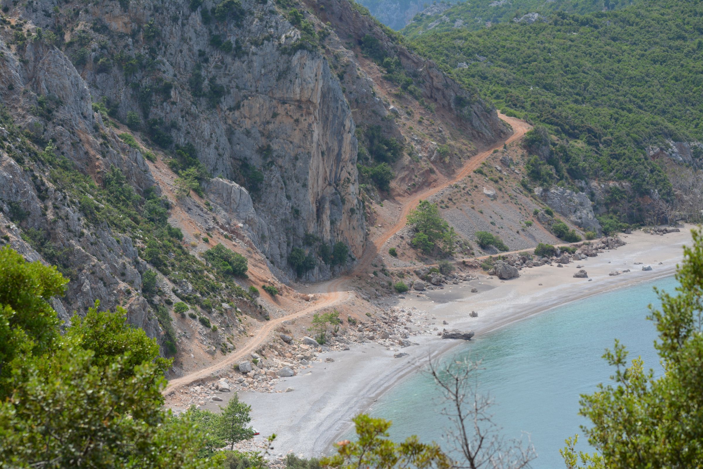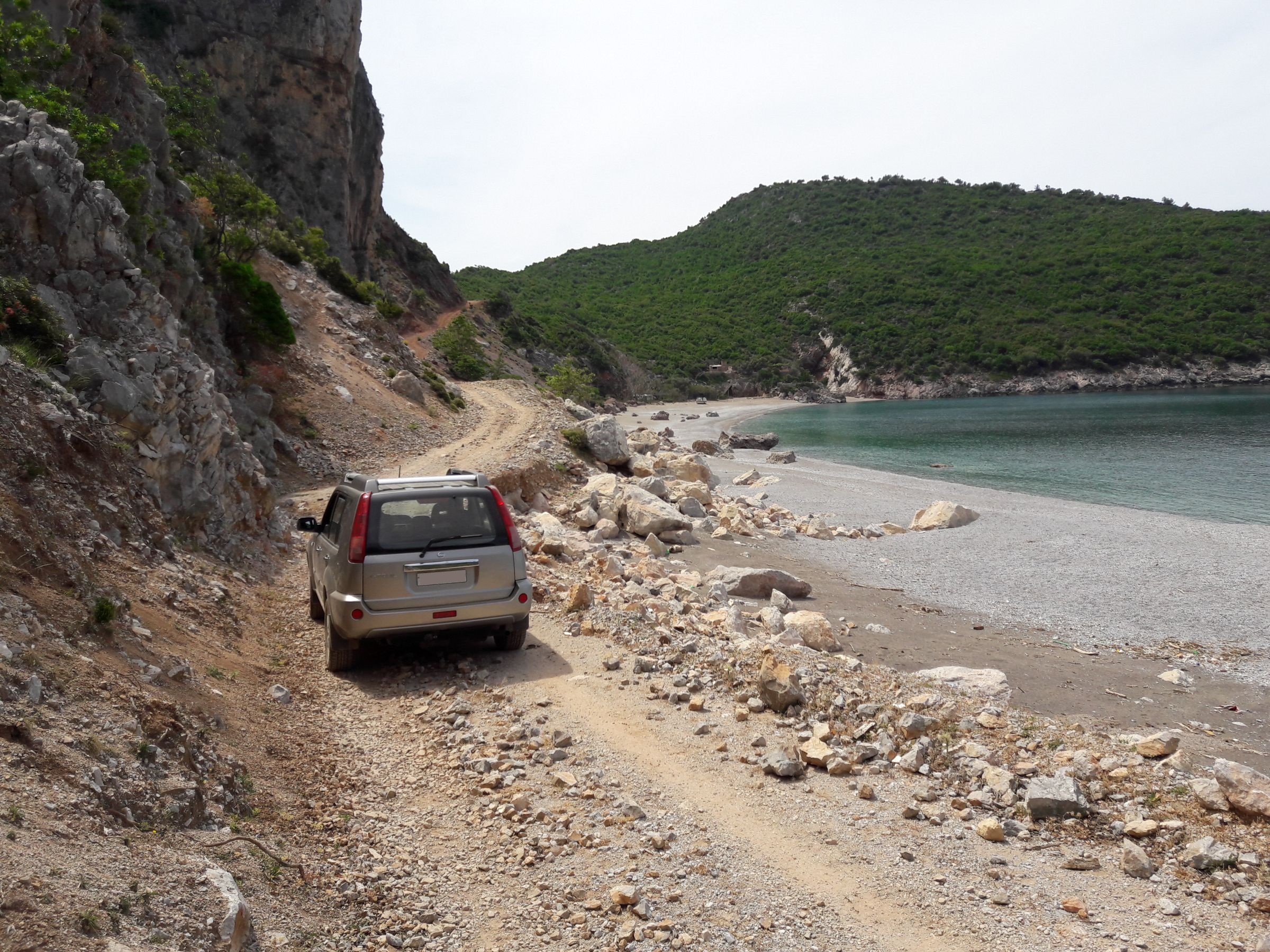 These are two remote, beautiful beaches in central Evia. The dirt road starts from the tarmac road that connects Kimi with Metohi, and passes at first from Tsilaros and then continues to Thapsa. To arrive to Tsilaros, is not very difficult, you don’t need four wheel drive, just enough ground clearance, any crossover car is able to go. From Tsilaros to Thapsa, there is a steep and long climb that depending on the situation of the ground, may be unpassable without four wheel drive and some momentum, as the terrain is loose.
